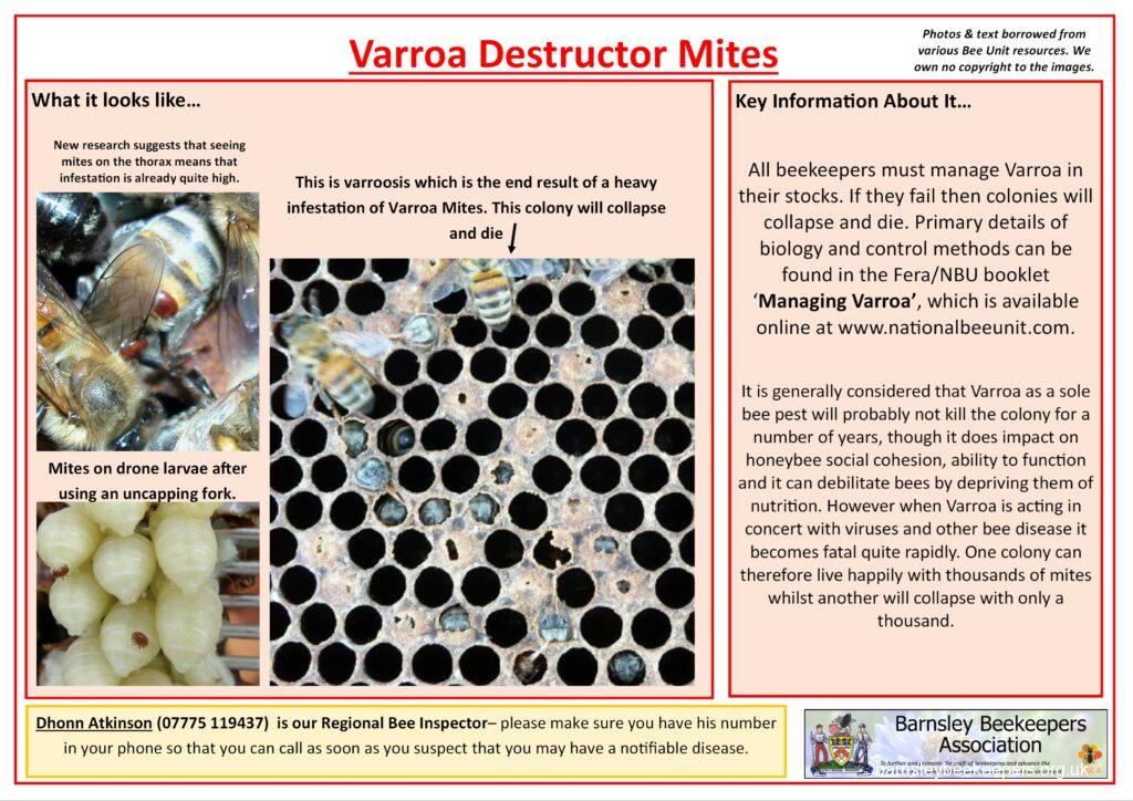 Bee Base also has a very useful eLearning course on diseases and pests. Once you login, down the left hand menu you will see an option for eLearning.